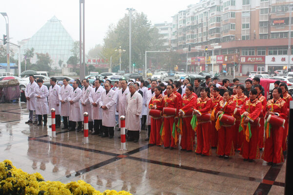 11月7日上午,天空虽然下着小雨,我院门诊楼前却人声鼎沸,聚集了不少准备开膏方的群众,医院腰鼓队的队员们载歌载舞,我院第七届“膏方养生文化节”在此隆重开幕。开幕式由我院副院长张柏华主持。医院院长朱伯健、副院长张士兰以及部分医护人员和周边市民百余人参加了此次活动。
