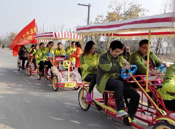 为培养团队精神、展现团队力量,激励先进人物,激发工作热情,日前,我院工会、人事科、后勤科联合组织“清新商丘”志愿者和“两学一做”知识竞赛获奖者20余人,至安徽淮北市相山公园等地开展拓展活动 。此次活动的主题为“绿色出行,重视团队,超越自己”。在相山公园,大家参观了淮海战役将军碑林和将军亭,缅怀先烈,珍惜当下,增强爱国爱党意识。期间,偶遇相山“七五”普法工作者,医院职工积极与其互动,正确回答问题,并得到了鼓励奖品。参加活动人员还自觉收集路边垃圾,以实际行动倡导游客增强爱护环境意识。下午,大家参观了相山湿地公园,并组织了大家三、五人一队骑多人自行车环岛游活动。迎着温暖的冬阳,大家有说有笑,齐心协力,你追我赶,在不知不觉中完成环岛游。骑车环岛活动,不仅使大家放松身心而且展现了团队协作精神。