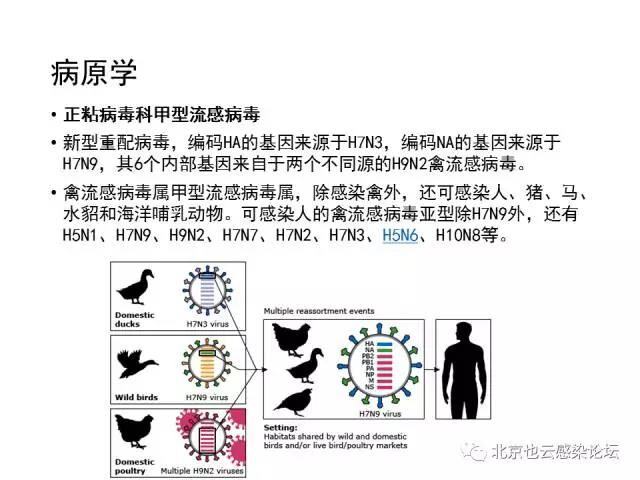 病原学部分将甲型流感病毒亚型做了更新,补充说明了新近发现的禽流感病毒亚型,而且强调H7N9禽流感对禽类致病力低,不易被发现的特点。