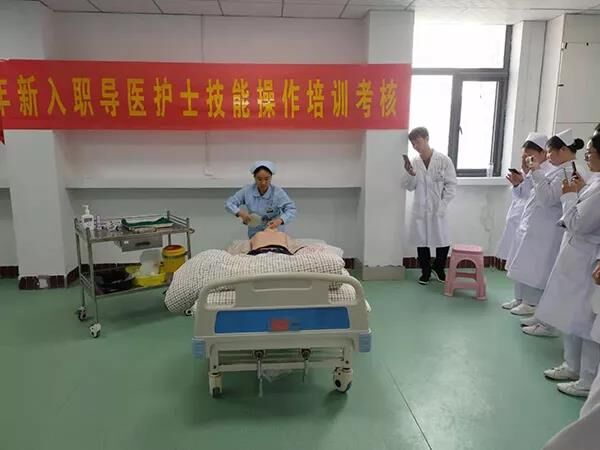 理论培训结束后紧接着进入到操作技能培训。包含徒手心肺复苏、吸痰、吸氧、静脉输液共4项操作。培训结束后,对20名新入职导医护士进行了严格的理论和操作考试。岗前培训在全体老师和学员的共同努力及院感办、宣传科、办公室的大力协助下,顺利完成任务。
